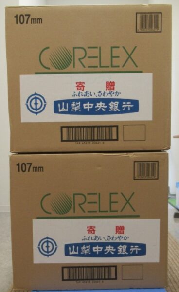 昨年に引き続き、山梨中央銀行様より、銀行業務で使用した書類を再利用して作られた「リサイクルトイレットペーパー」をいただきました。