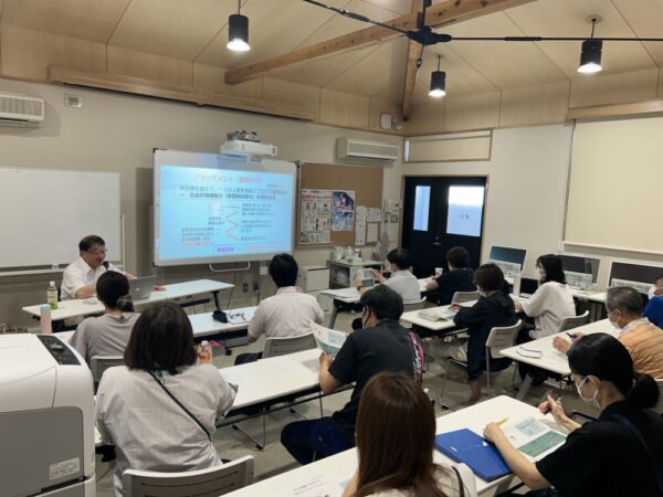 特別支援学校うぐいすの杜学園 > 学校から > 教務係より > 校内研修会 2024年7月31日カテゴリー: 学校から 教務係より 校内研修会 子どものこころサポートプラザセンター長である相原正男先生に講師をご依頼し、校内研修会を行いました。『対人支援職で大切なこと』と題して、対象者を理解するためのアタッチメント、アタッチメントと非認知的能力の関連、キーパーソンとアタッチメントネットワーク、対人支援職のメンタルヘルスについてなど、多岐にわたるお話を頂きました。対人支援職としての立ち位置、距離感、考え方等について改めて理解を深めるとともに、キーパーソンとチーム支援に在り方や感情労働職である教師のメンタルヘルスとしてのマインドフルネスの必要性について学ぶことができました。