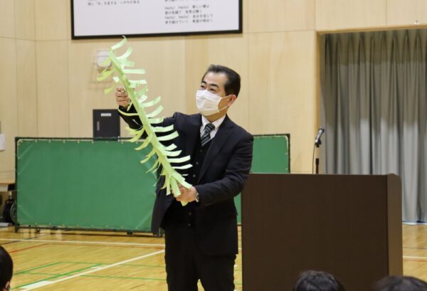 校長からは、2学期の振り返りや冬休みの過ごし方について話がありました。話の後には、子供たちが大好きな校長の手品によりクリスマスツリーを出現させ、会場からは驚きと喜びによる拍手が起こりました。児童生徒からは「がんばったこと」の発表があり、すべての児童生徒がそれぞれに目標をもって頑張った様子が伝わりました。全校みんなでそれぞれの成長に拍手を送りあい、たくさんの笑顔で2学期を終えることができました。