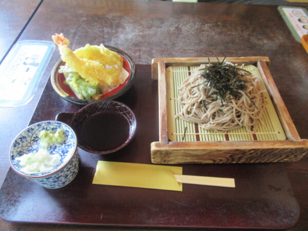【1日目の昼食は、松本城近くの蕎麦屋で天ざるそばを食べました。】